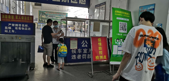 是七月上旬,位于紅旗廣場的湘運(yùn)中心汽車站似乎還沒有恢復(fù)元?dú)猓词怪苣,乘客也是寥寥無幾,唯有候車室的大屏幕播放著疫情防控的宣傳。